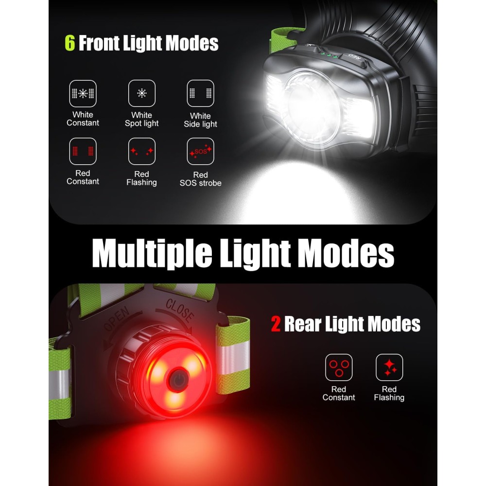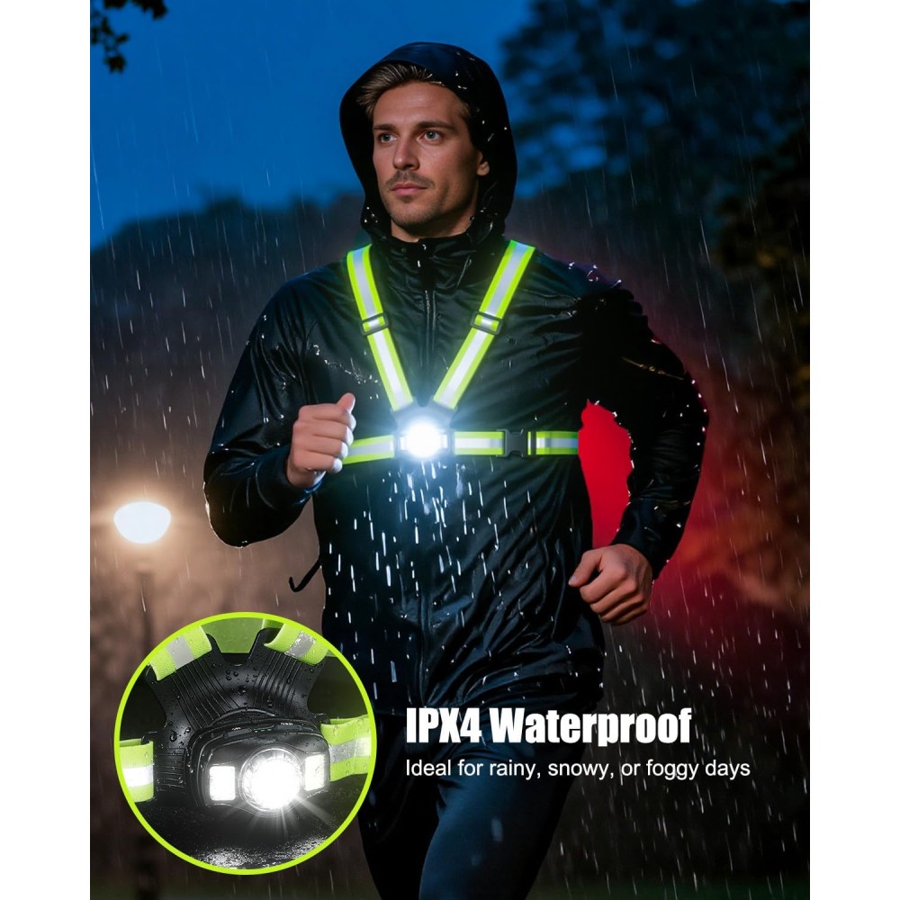 - [Ultra Bright & 360° High Visibility] Equipped with a 500 lumen front LED, our running lights for runners illuminate paths up to 70 meters ahead, cutting through darkness for safe night outings. The upgraded rear red warning light actively alerts oncoming traffic, while reflective straps enhance side visibility. This reflective running vest ensures you're seen from every angle, eliminating blind spots for safe running, jogging, or walking.